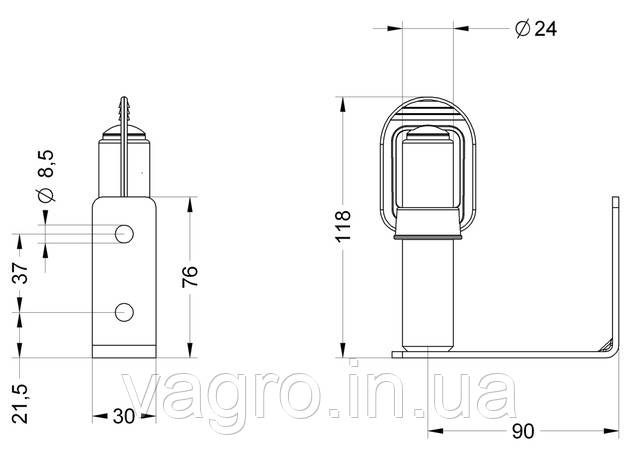 Ціна з ПДС Вілка з кронштейном для настінного монтажу Штіфт з кронштейном для настінного монтажу з оцинкованої сталі, ґумова кришка. Внутрішній латунний роз'єм вага 0,32 кг